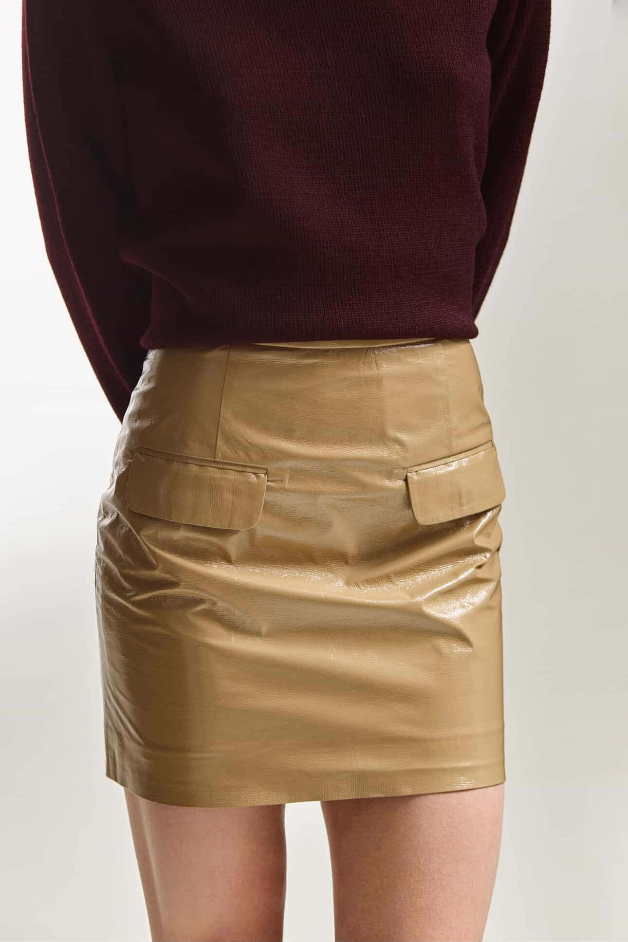 Ця спідниця має виразний, стильний характер з акцентом на текстуру та деталі.Висока посадка, добре підкреслює талію та формує акуратний силует. Екошкіра з легким глянцевим ефектом, виглядає сучасно й ефектно. Спідниця ідеально підійде як для повсякденних образів із трикотажем чи сорочками, так і для більш акцентних вечірніх поєднань.