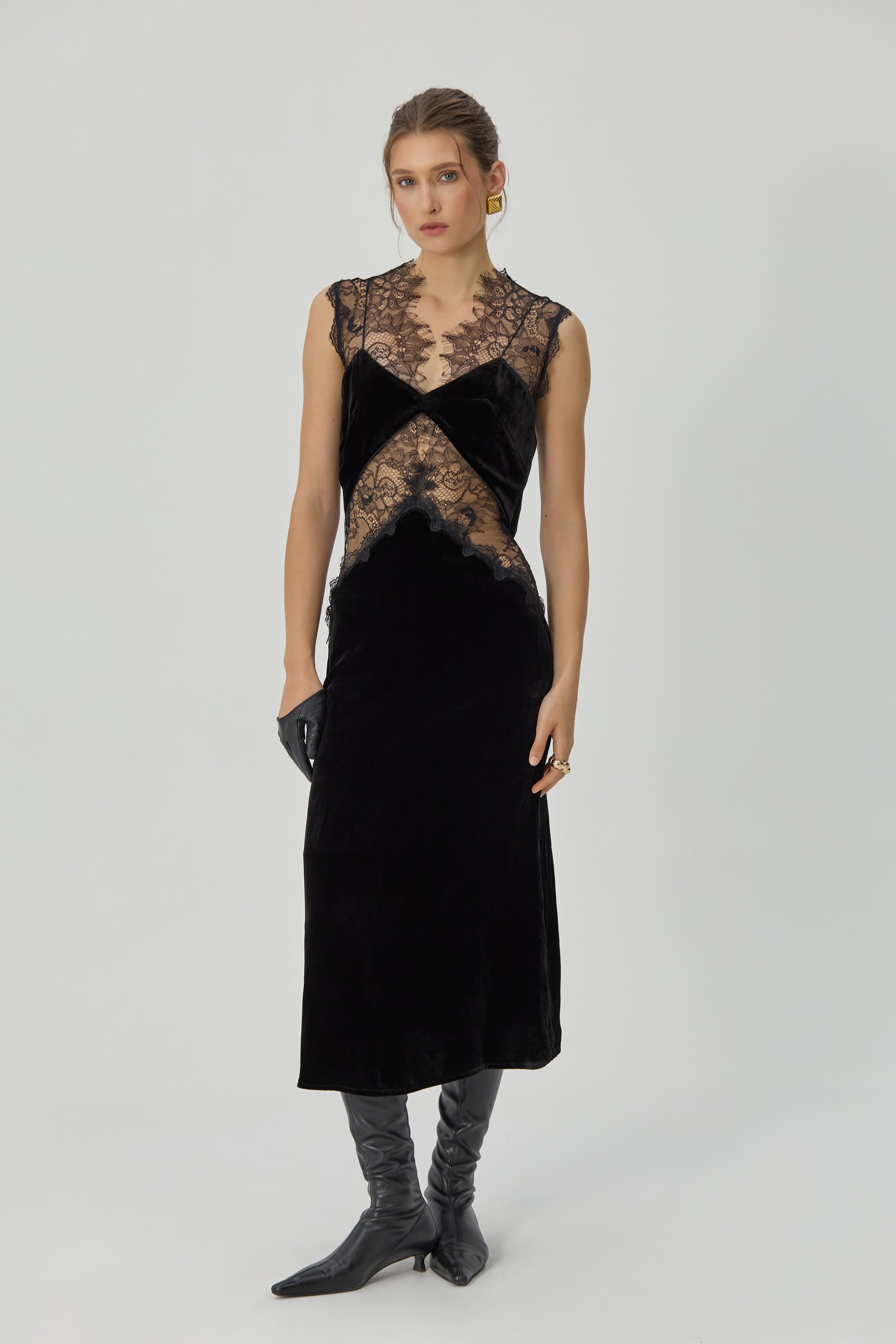 Here is a statement of independence and style that challenges everyday life. Lace inserts turn classic restraint into the depths of a woman's desire to be heard - it's not just a form, it's a movement forward, towards yourself. In it, you are a lady of your own choice, unique in dark black, which is both restrained and convincing.