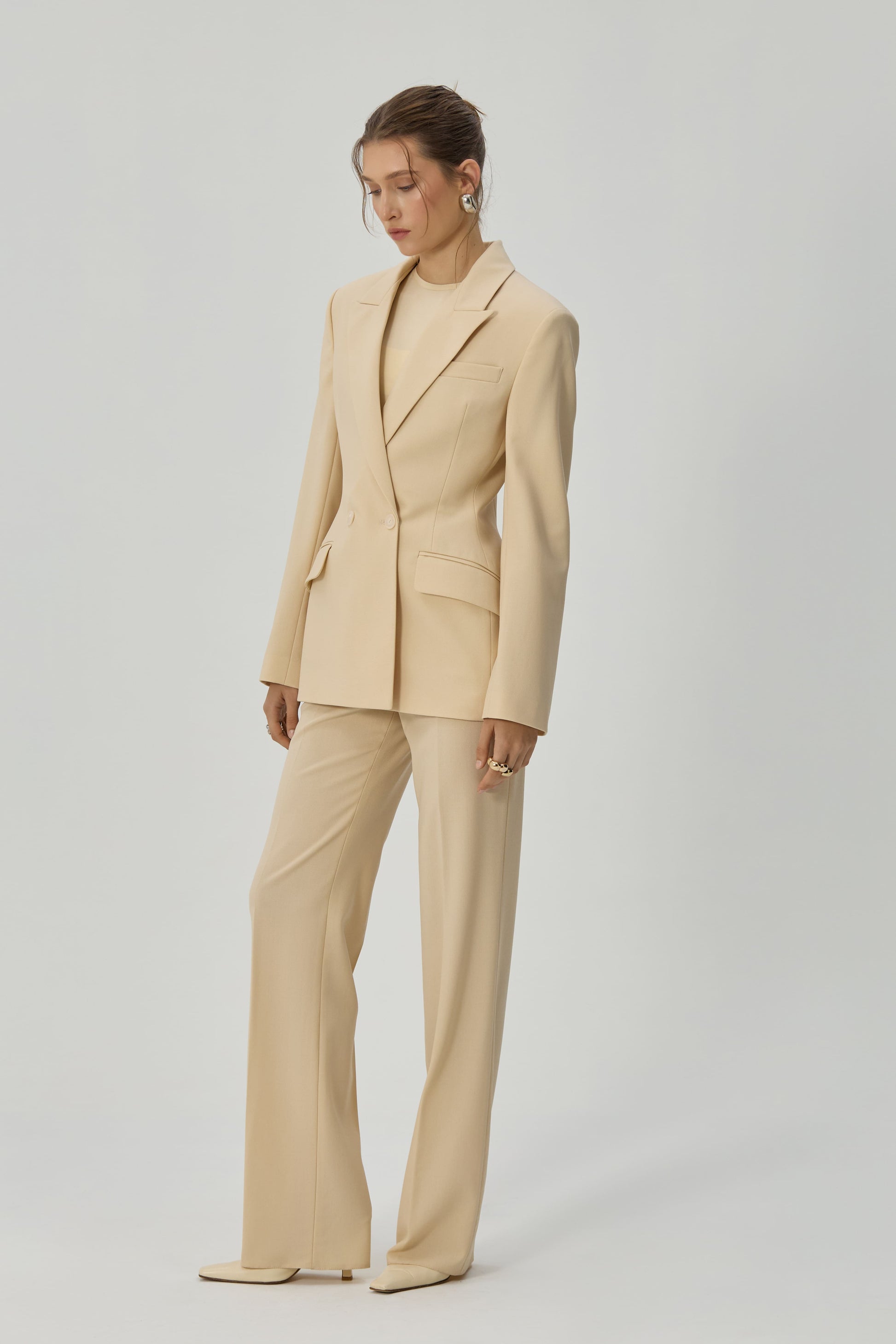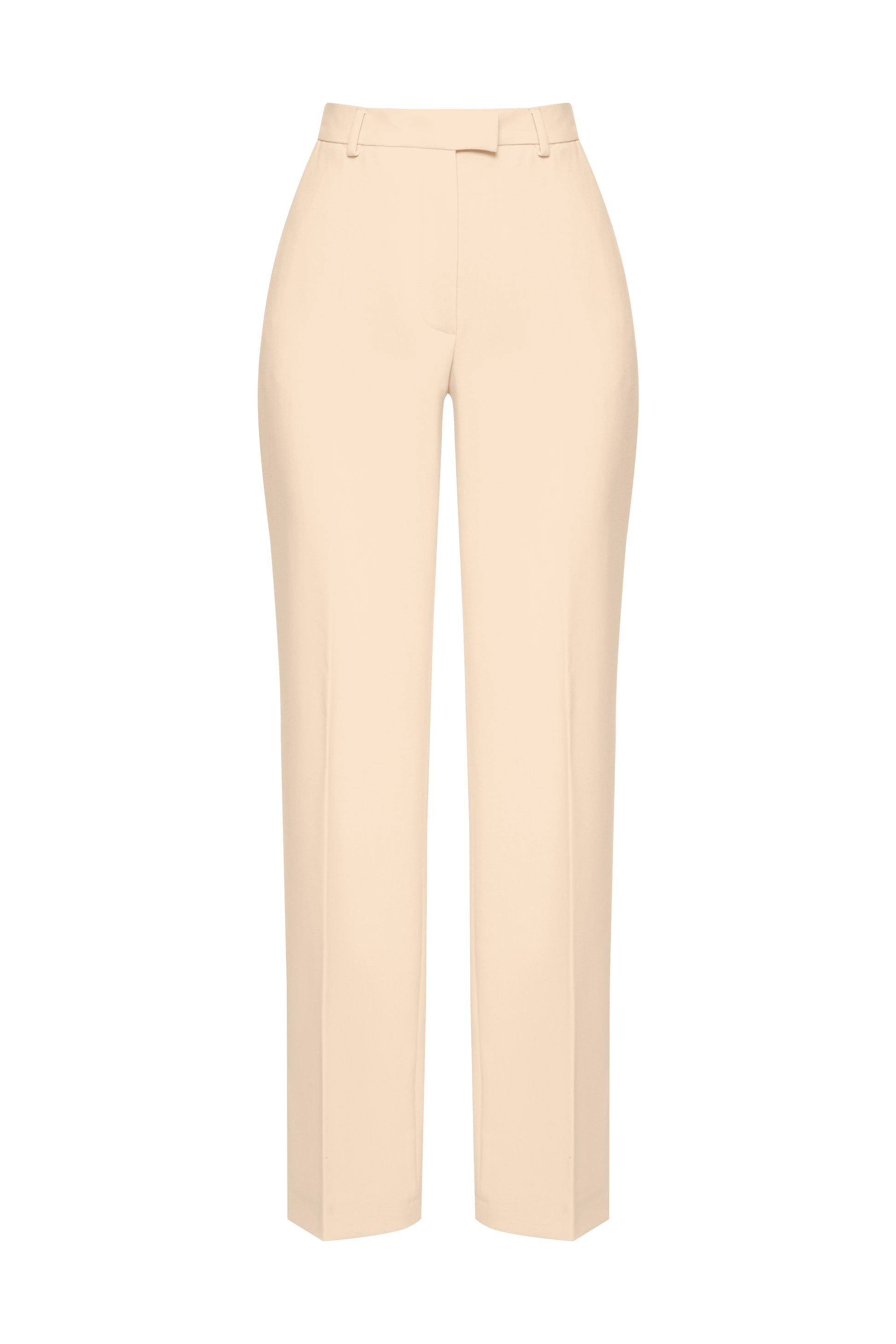 Ecru wool trousers are about comfort and style in one: natural wool breathes, warms and keeps its shape, so you feel comfortable all day long. Their straight silhouette and high waist fit perfectly into the main trends of this fall. In them you will create an image that combines ease of movement and modern elegance.