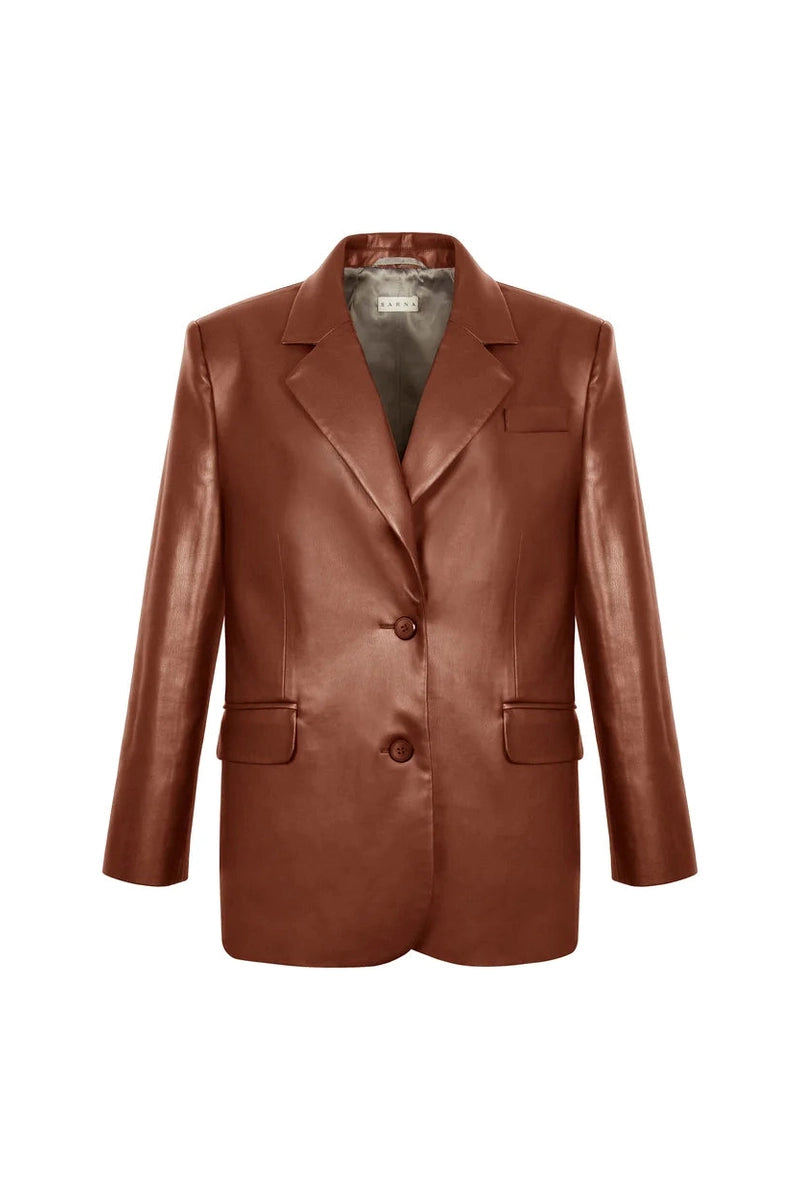 Жакет із коричневої екошкіри. М’який і теплий, універсальний для базових образів, що підкреслюють стиль. При його створенні ми прагнули дати волю експерем поєднань.
