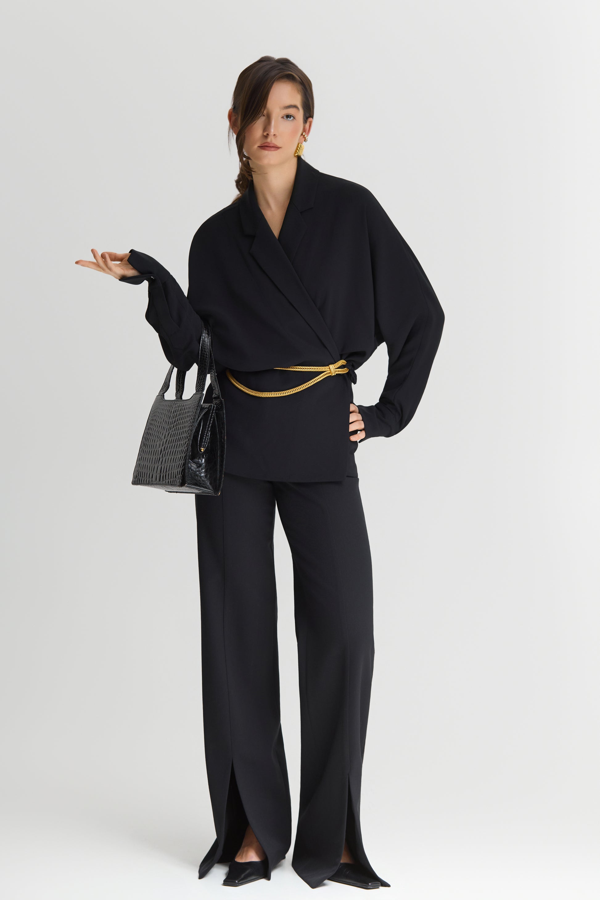 Чорні брюки з розрізами від Sarna — це баланс між класикою та дерзкістю, створений для тих, хто любить заявляти про себе стильно. Розрізи спереду додають образу сміливості, а прямий силует і висока посадка візуально подовжують ноги, створюючи елегантну постать.