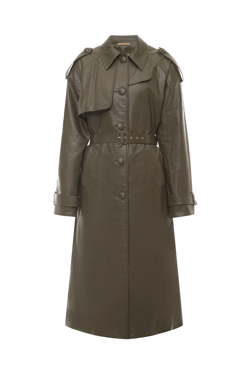 Пальто кольору хакі з еко-шкіри