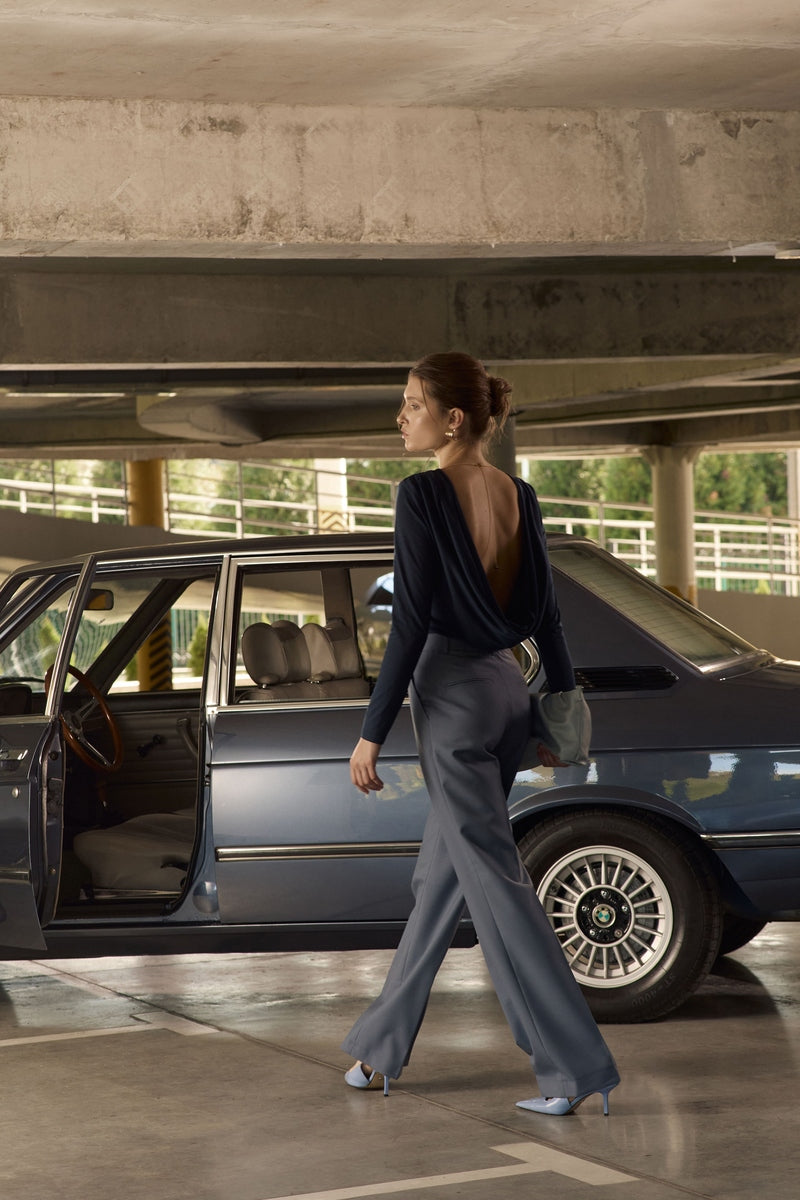 Це акт мистецтва у чистому вигляді! Лонгслів з глибоким драпірованим вирізом на спині додає образу сучасної чуттєвості. А намисто з натуральним камінчиком, що ніжно спадає по спині, підкреслює жіночність і граціозність, додаючи образу грайливості та неперевершеної родзинки. Цей лонгслів стане ідеальним вибором для вечірніх виходів, романтичних побачень або особливих подій, де ви хочете виглядати бездоганно і залишати по собі незабутній спогад.