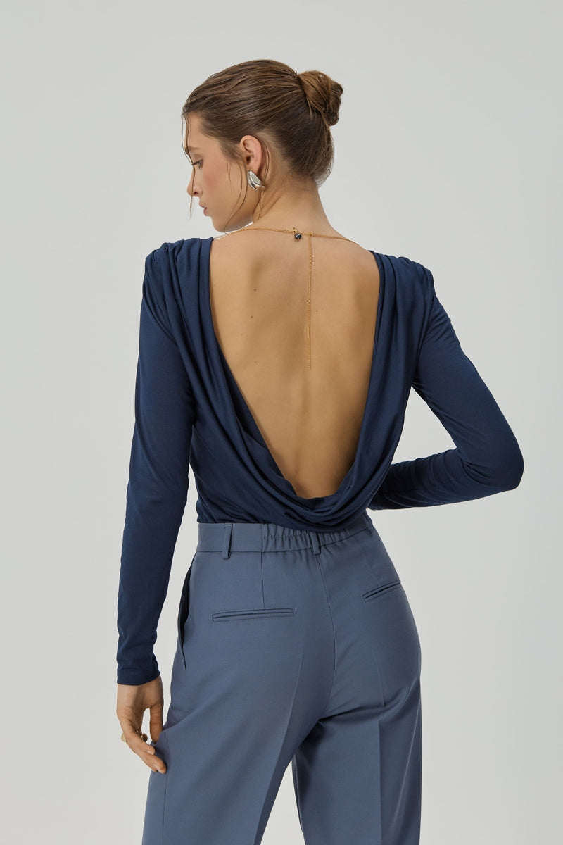 Лонгслів з відкритою спиною і намистом