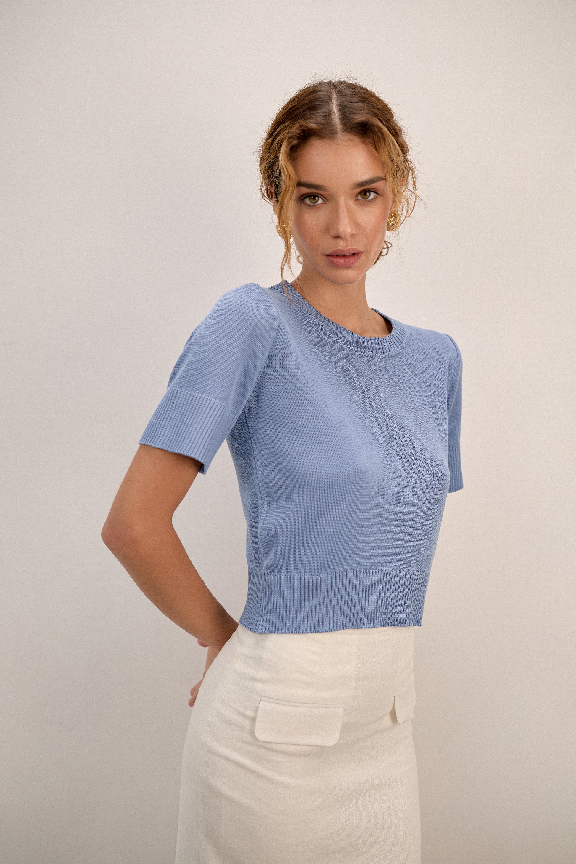 Ми шукали відтінок, який освіжає обличчя і не конфліктує з гардеробом. Пастельна блакить добре працює з білим та бежем, додає легкість образу. Крий лаконічний, добре підійде під шарф, тренч або жакет.