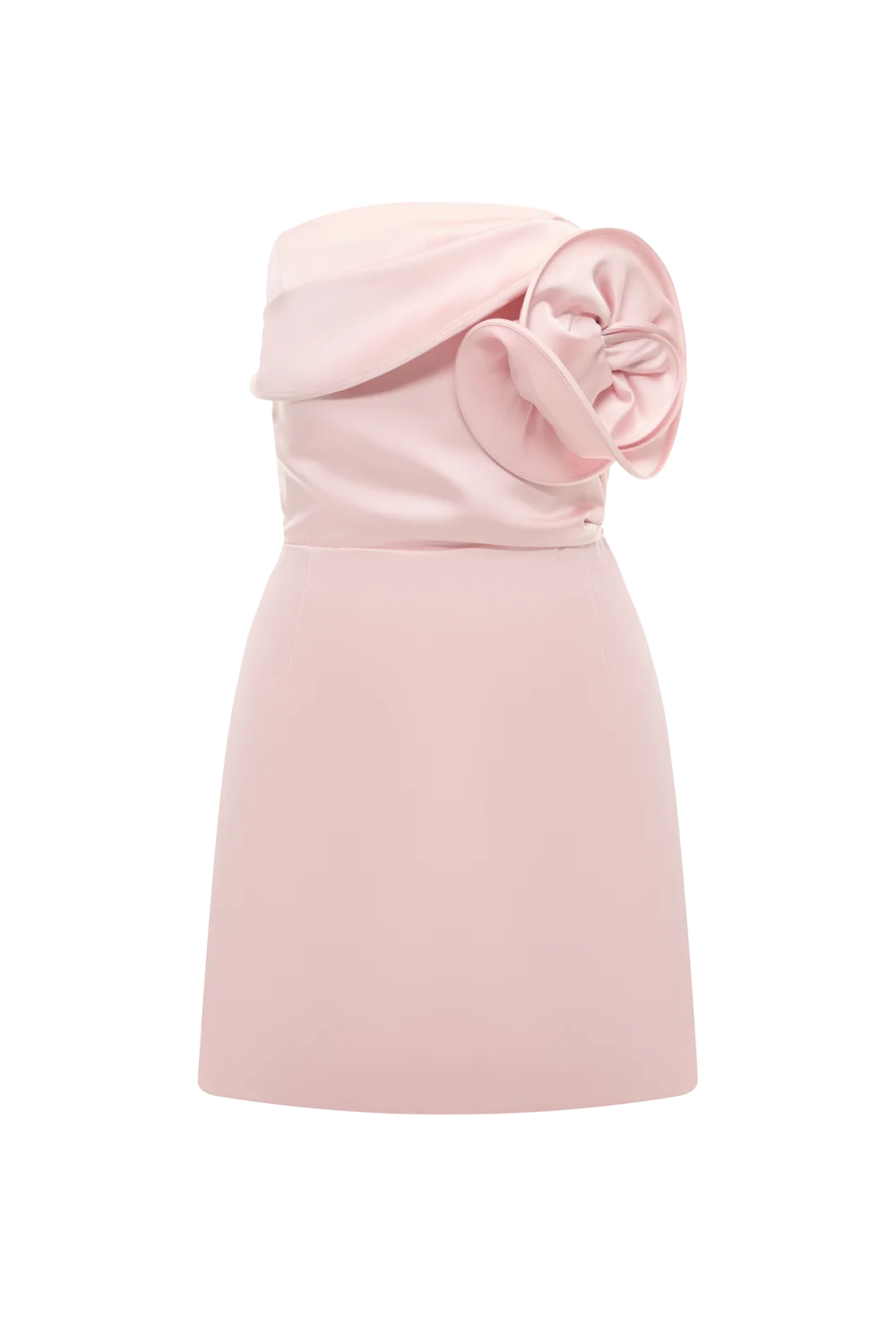 Це легка версія класичної «Sofia» - коротша, динамічніша, але з тим самим настроєм. Прикріплена троянда підкреслює лінію плеча і додає грайливого акценту. Сукня, що виглядає доречно і вдень, і ввечері.