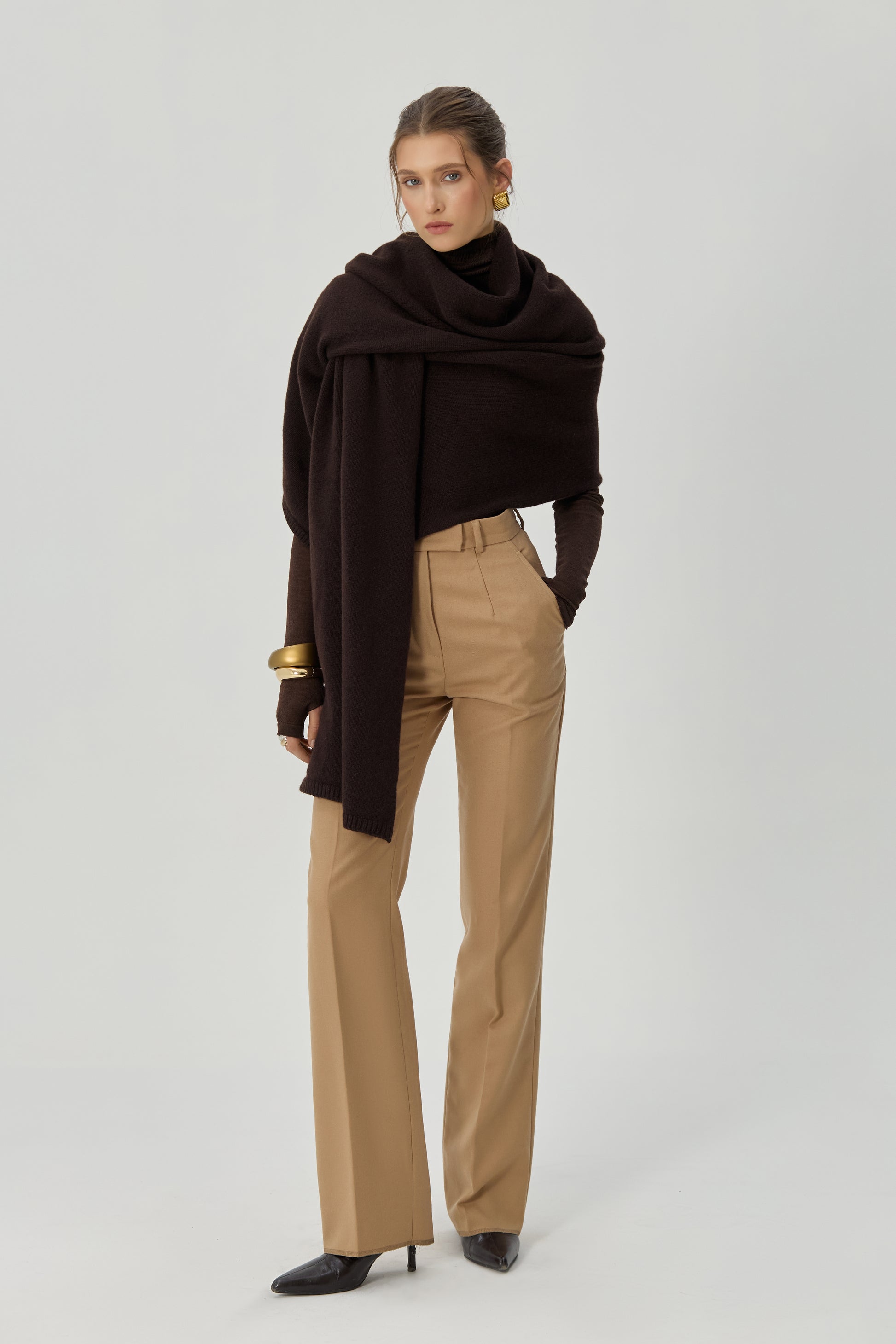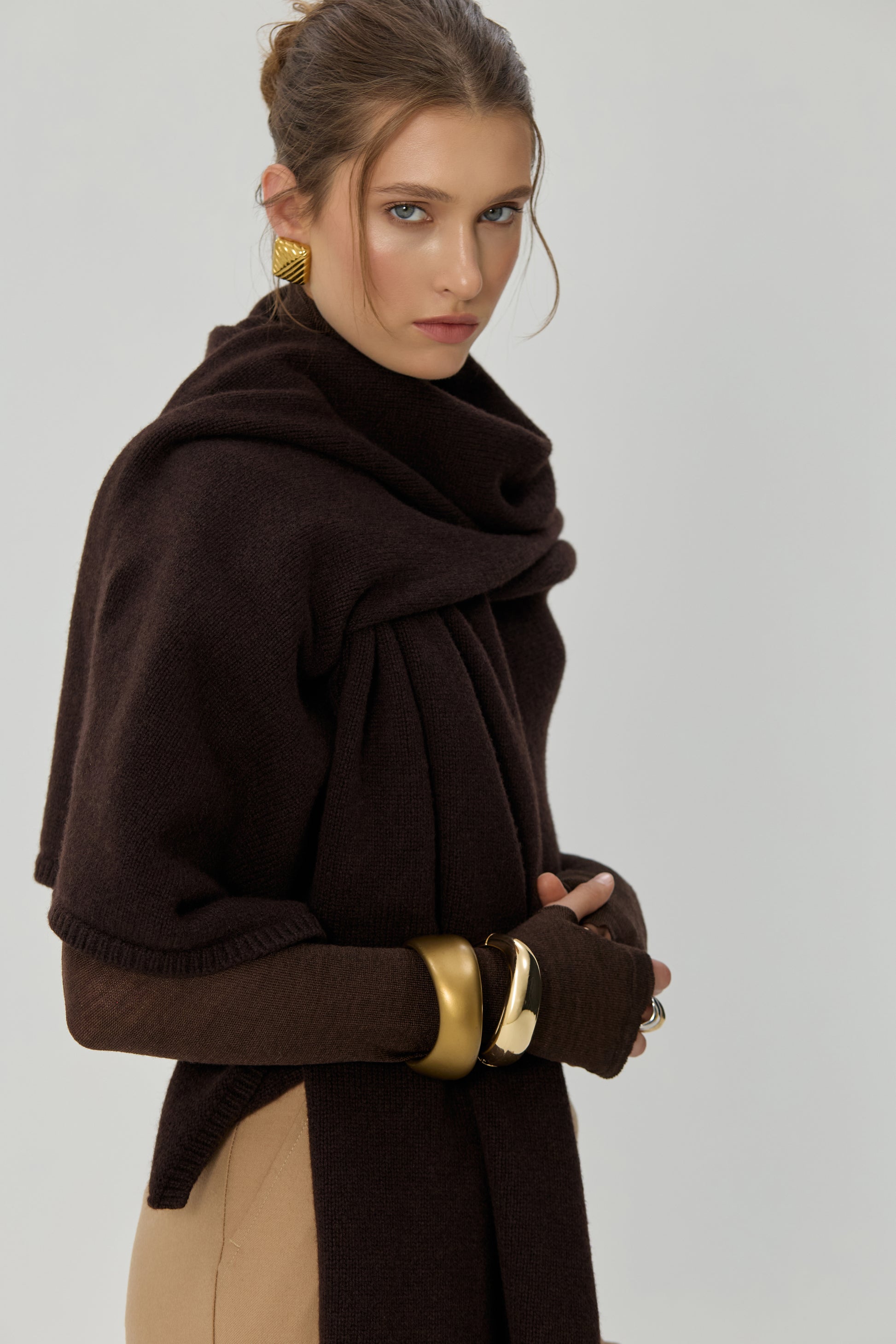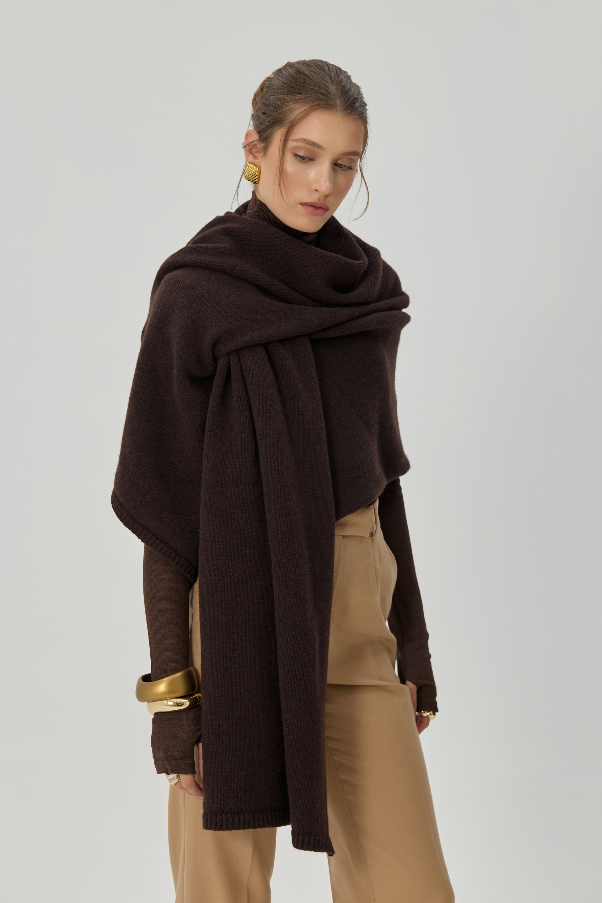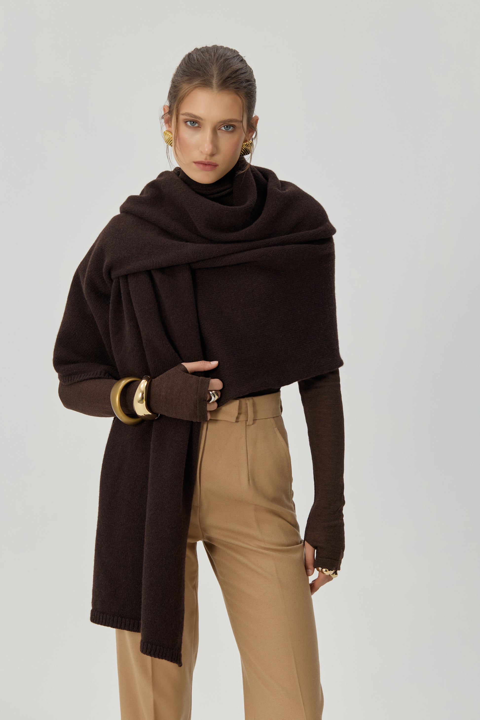 М’яка вовна огортає тіло, а теплий шоколадний відтінок додає глибини будь-якому поєднанню.