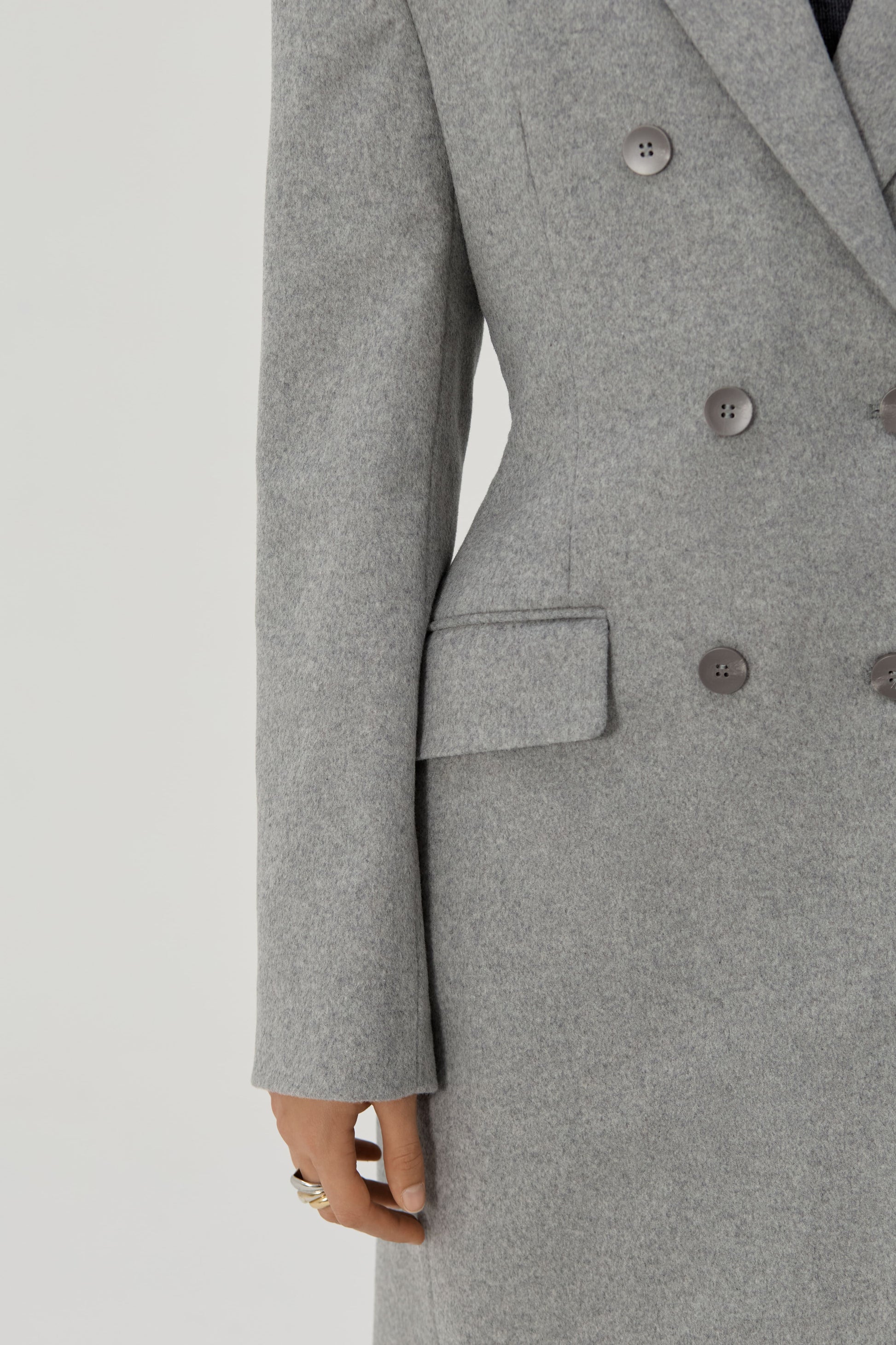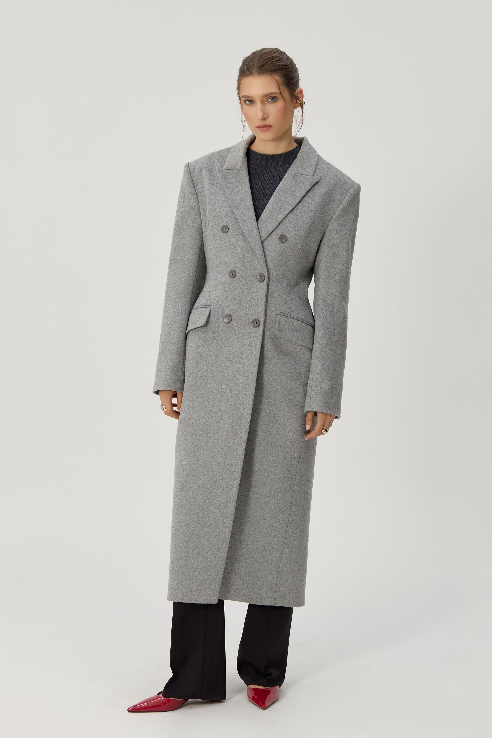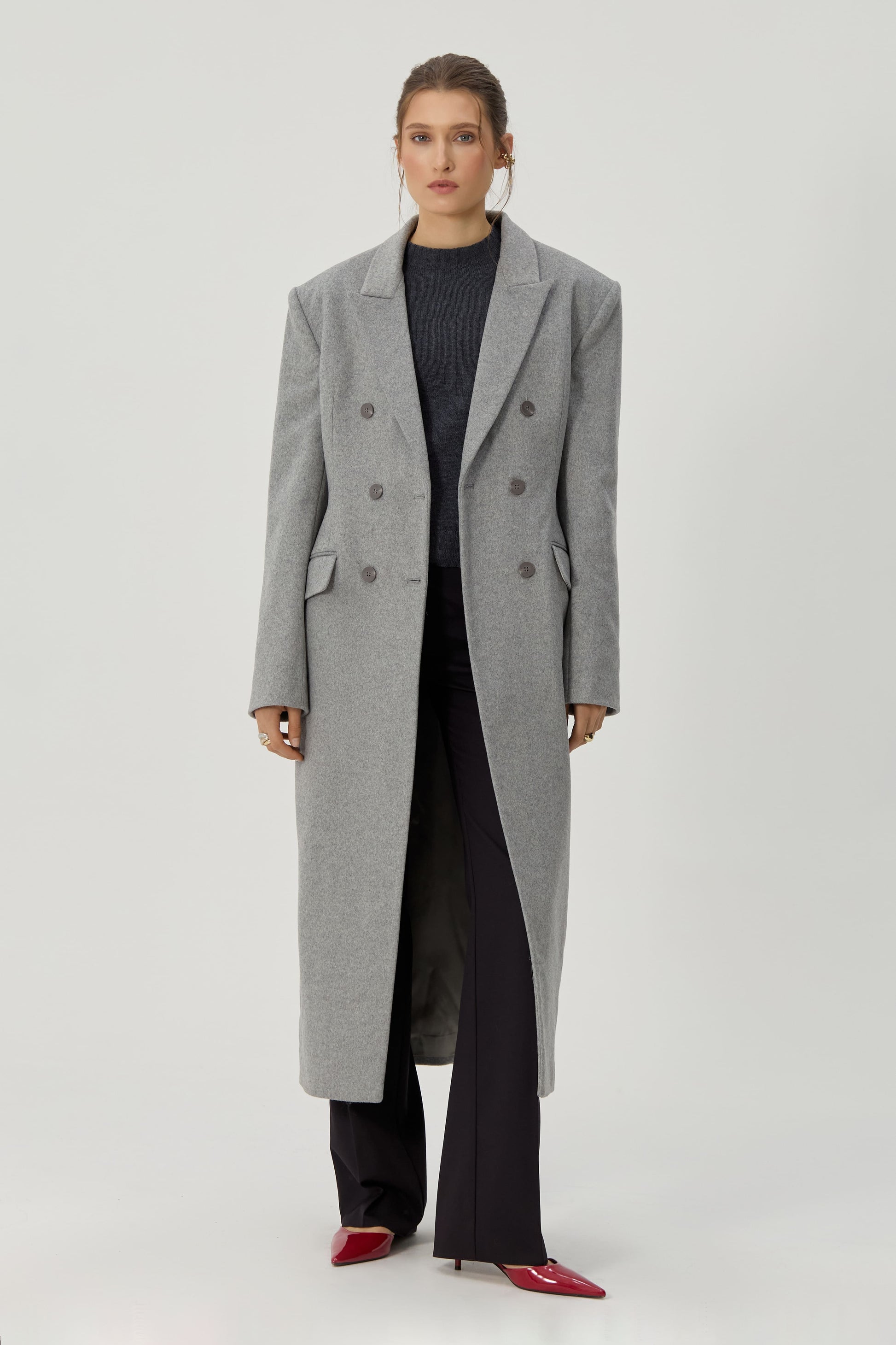 Тут немає жодної зайвої деталі - лише бездоганний крій, глибокий відтінок сірого й ідеальна посадка, що підкреслює фігуру.
