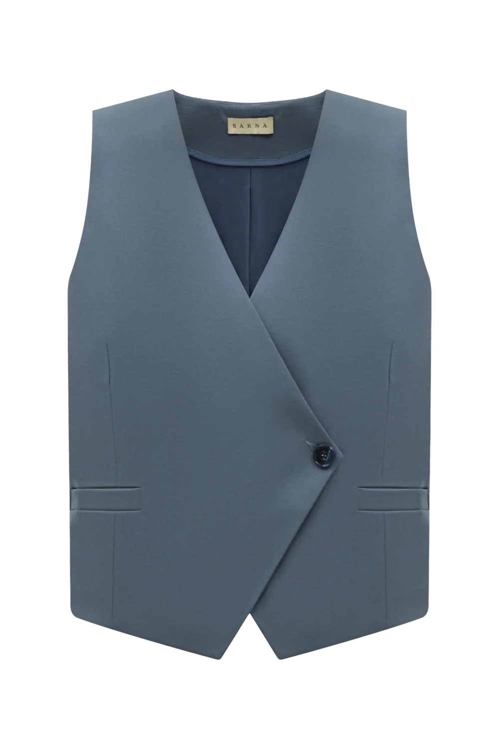 Глибокий синій жилет з вільним кроєм для комфортного та невимушеного носіння. М’яка тканина приємна на дотик, а стриманий колір буде легко комбінуватись з іншими речами вашого гардеробу. Коли ми розроблювали цю модель, то прагнули зробити її універсальним вибіром для роботи та повсякденних образів.
